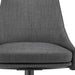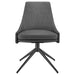Out with the old and in with the new, this charcoal and black fabric and steel dining side chair can perfectly suit any dining table. The side chair has no arms so it can easily fit around the table. Can also be used as an accent in living room or bedroom. Complete with solid back, this chair not only looks good but is comfortable. A swivel feature allows this chair to turn, adding versatility to your seating. Dining chairs are a great way to compliment your kitchen or dining room but can also be used in the foyer, hallway, or any room you might need extra seating. 32.50-inch h x 21.50-inch w x 24.00-inch d.