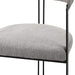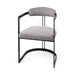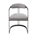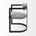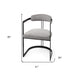 Add a touch of contemporary design to any dining or seating space in your home with this Curvy Black and Gray Upholstered Dining Armchair. The chair has a metal frame which is finished in a deep black with a C shape base and lines up the back to add structure and a nice design touch to the overall look. The seat cushion is covered in a soft and luxurious creamy gray fabric which matches the back support cushion as well. This chair can be used in your dining room, your kitchen, or even as extra seating in your living room. 30" H x 21" W x 20" D
