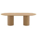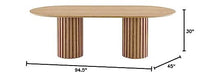 Details: Make the dining space center stage in your home with the Senja Dining Table designed for everyday dining and entertaining. A striking addition to a dining room or kitchen, this oval table features fluted linear detail on its two column bases that bring subtle mid-century aesthetics to a modern home or apartment. The sturdy dining table is crafted with MDF with wood veneer boasting a beautifully organic wood grain. With a 95" width, this oval dining table comfortably seats six dining chairs. Includes felt pad to protect flooring. Weight Capacity: 330 lbs.