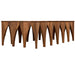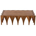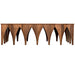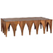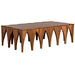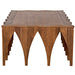 Dark Walnut is fashioned into a mid-century inspired coffee table featuring dimensional pointed arch legs that create a zigzag top for an architectural effect.