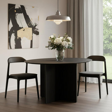 Give your room the perfect anchor piece with this 60-inch black wood pedestal base round top dining table. This table is made from manufactured woo...