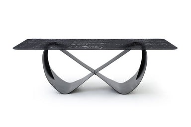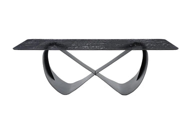 Stylish and super sturdy, the 94-inch clear and black glass and metal double pedestal base dining table is an amazingly good-looking dining table t...