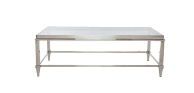 Make your living room or family room really stand out with this 55-inch clear and silver glass and steel coffee table. A silver steel frame is fini...
