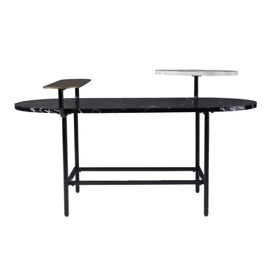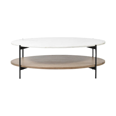 Add handsome, fashionable design to your living space with this 48-inch brown and black genuine marble and metal oval coffee table with shelf. The ...
