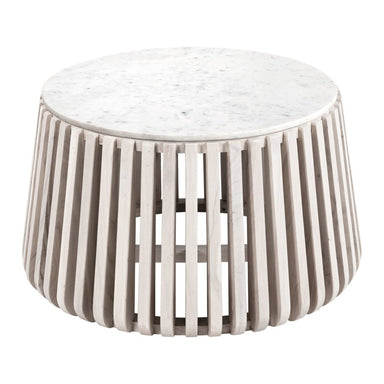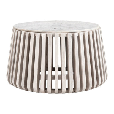 This stylish 34-inch white and natural genuine marble and wood round drum coffee table is not only practical, but good looking and built to last. Q...