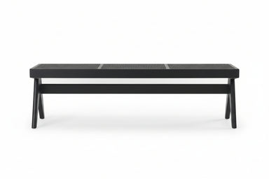 Optimize your space and add some charm to your room with the 59-inch black solid wood and cane dining bench. A solid black solid wood frame is fini...