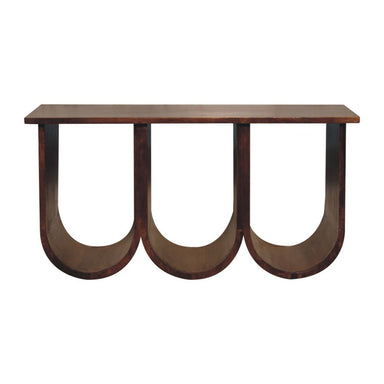 Give your living room, family room, or office the perfect anchor piece with this 32-inch chestnut solid wood abstract coffee table with three shelv...