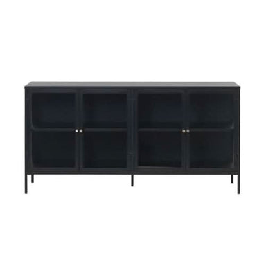 Brand: Unique FurnitureColor: BlackFeatures: The metal cabinet features compartments behind the glass doors that provide plenty of storage space t...