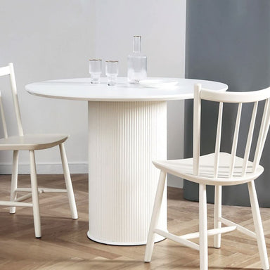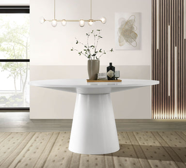 Brand: SCANORDICColor: 59" WhiteFeatures: CLASSICALLY SIMPLE DESIGN: This round dining table for 4 adopts a simple and atmospheric shape design, a...