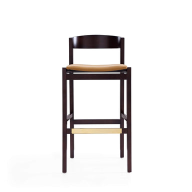 Brand: Manhattan ComfortColor: Camel/Dark WalnutFeatures: TIMELESS LUXURY: This exquisite bar chair showcases a classic wood frame, low backrest, ...