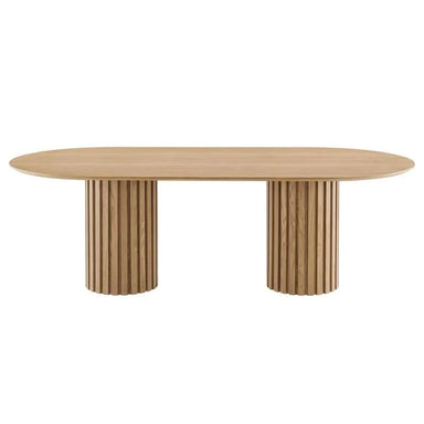 Brand: ModwayColor: OakFeatures: MID-CENTURY DINING TABLE - A striking piece in a home or apartment, this oval table features fluted linear detail...