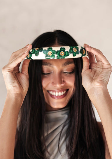 ARTISTIC NOTES An array of hand-painted deep green flowers, inspired by the looped yarn texture found in Crochet. Shop more of our Crochet Collec...