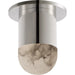 Spice up indoor lighting arrangements with the Melange Mini Melange Mini LED Flushmount from Visual Comfort Signature, formerly known as Visual Comfort, A retro-inspired assembly that showcases contrasting surfaces, it adroitly pairs mounting and suspension structures made from smooth-surfaced metal with a rounded alabaster shade. The translucent, natural veins of the alabaster blunt bright glare. This shade element passes out a pleasing glow with an organic feel, while the metalwork around it gleams with glittering light from its reflected ambiance.