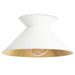 Experience the beauty of modern design with our Viggo Flush Mount. Its clean silhouette is complemented by a subtly textured metal finish. Featuring a gold-leafed shade interior, the Viggo gives the room a warm glow and a sophisticated pop of contrast.