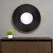 Add a touch of sunshine to any space in your home with this 32-inch black and gold round manufactured wood and metal framed accent mirror. This round shaped mirror will open up any space you put in piece in. This frame works nicely with the full-bodied mirror in the middle. It is the perfect wall decor to keep up all year round. This mirror can fit perfectly in any space and give that space a distinctive look. 31.5-inch H x 31.5-inch W x 1.2-inch D