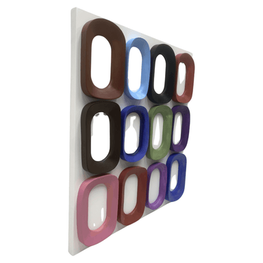 Rainbow Oval Riot Overview Introducing "Rainbow Oval Riot: Colorful 3D Wood Wall Display" - a vibrant array of 3x4 wooden ovals in a dynamic 3D com...