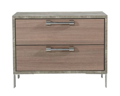 Our 20-inch brown oak and gray two drawer nightstand will compliment your bed beautifully. Made of high quality solid + manufactured wood that is b...