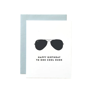 'Happy Birthday to One Cool Dude' Card Size A2 (4.25 inches by 5.5 inches folded).Packaged in a cello sleeve with corresponding blue envelope.Bla...