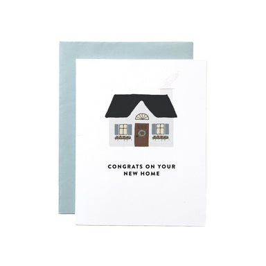 Congrats on Your New Home Card Size A2 (4.25 inches by 5.5 inches folded).Packaged in a cello sleeve with corresponding blue envelope.Blank inside,...