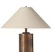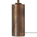 All-metal table lamp finished with a unique process to accomplish its iridescent acid wash look. The metal is first polished, then oxidized. It's finished with a heating process and lacquer seal for an antiqued look, complemented by a simple linen shade.