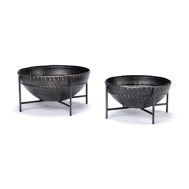 This Set of Two Metal Bowls with Stands is the perfect way to elevate the look of your home or add a statement piece to your next dinner party. Thi...