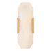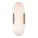 Luxuriously refined, the Toulouse LED Wall Sconce Modern Forms diffuses illumination through naturally carved Spanish alabaster stone. Held simply by two metal accents, the geometrically angled damp-listed sconce emits a soft organic glow. With a richly varied appearance, no two Toulouse sconces look identical, thanks to the uniqueness of alabaster’s natural veining. This artisanal fixture lends elegant sophistication wherever it’s installed, accenting contemporary spaces with the luminous depth of carved stone.