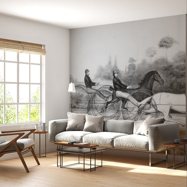 Step into the elegance of 19th-century sporting life with Harness Race Wall Mural. A captivating depiction of dynamic motion, aristocratic style, a...