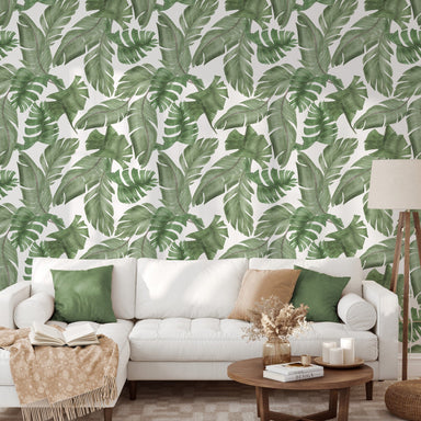 Large Tropical Green Leaves Wallpaper - Removable Peel and Stick Wallpaper - Traditional Wallpaper Peel and Stick removable wallpaper Please keep ...