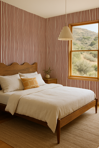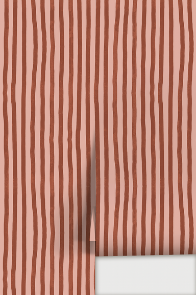 Bring a modern twist to your walls with the Dolce Stripe Wallpaper in pink and brick red, featuring Samantha Santana’s unique illustration. This ne...