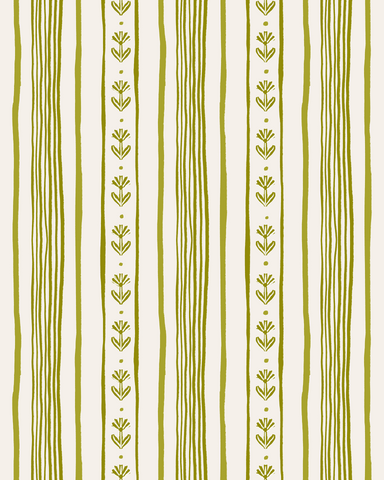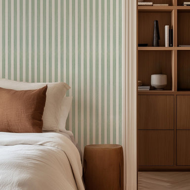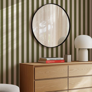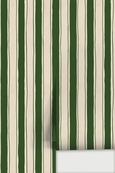 Bring a modern twist to your walls with the Dolce Stripe Wallpaper in green and beige, featuring Samantha Santana’s unique illustration. This new t...