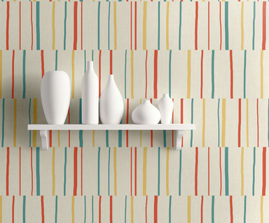 Available in both bold and earthy shades, this Stripe Block peel and stick wallpaper pattern is a contemporary take on mid-century design aesthetic...
