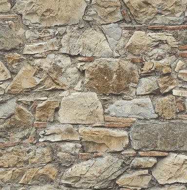 Recreate the look of rough-cut field stone and weathered mortar with this Faux Stone Wall prepasted wallpaper pattern by Seabrook Designs. The rust...