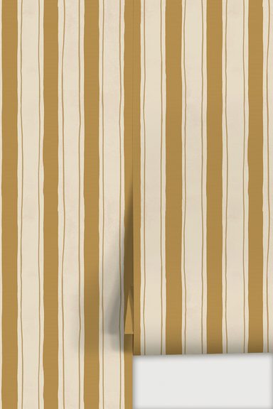 Add a touch of timeless poolside charm with the Riviera Stripe Wallpaper, illustrated by Samantha Santana. Featuring a sleek off-white and mustard ...