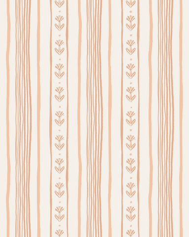 Add a touch of timeless poolside charm with the Riviera Stripe Wallpaper, illustrated by Samantha Santana. Featuring a sleek off-white and terra co...