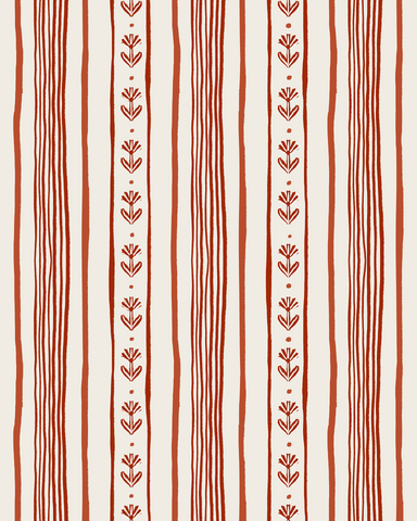 Bring a modern twist to your walls with the Dolce Stripe Wallpaper in off-white and brick red, featuring Samantha Santana’s unique illustration. Th...