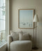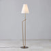 Pearce has a modern feel with vintage appeal. A pair of intersecting slender poles, one straight the other curved, form the airy, artistic body of this stylish floor lamp. Machine-like details at the base, Patina Brass metalwork and a tapered off-white linen shade take this understated design to the next level.