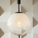 We created this architecturally inspired lamp with a subtle nod to 1970’s-style modernism. A large-scale orb shade of our new frost ombre glass is balanced between English bronze-plated steel hardware, while a faceted wood cuff detail draws the eye upward. Stellar on its own, it is even more impactful when installed in multiples. Damp-rated, although limited covered outdoor areas may affect finish. Finish will vary.