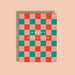 A festive Merry Christmas card in a modern red and green checkerboard pattern.