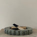 The Sun is a sculptural eight inch round tray cut from a single piece of solid marble or stone with scalloped edges, hand-finished by artisans in a growing stone atelier in Rajasthan, India.