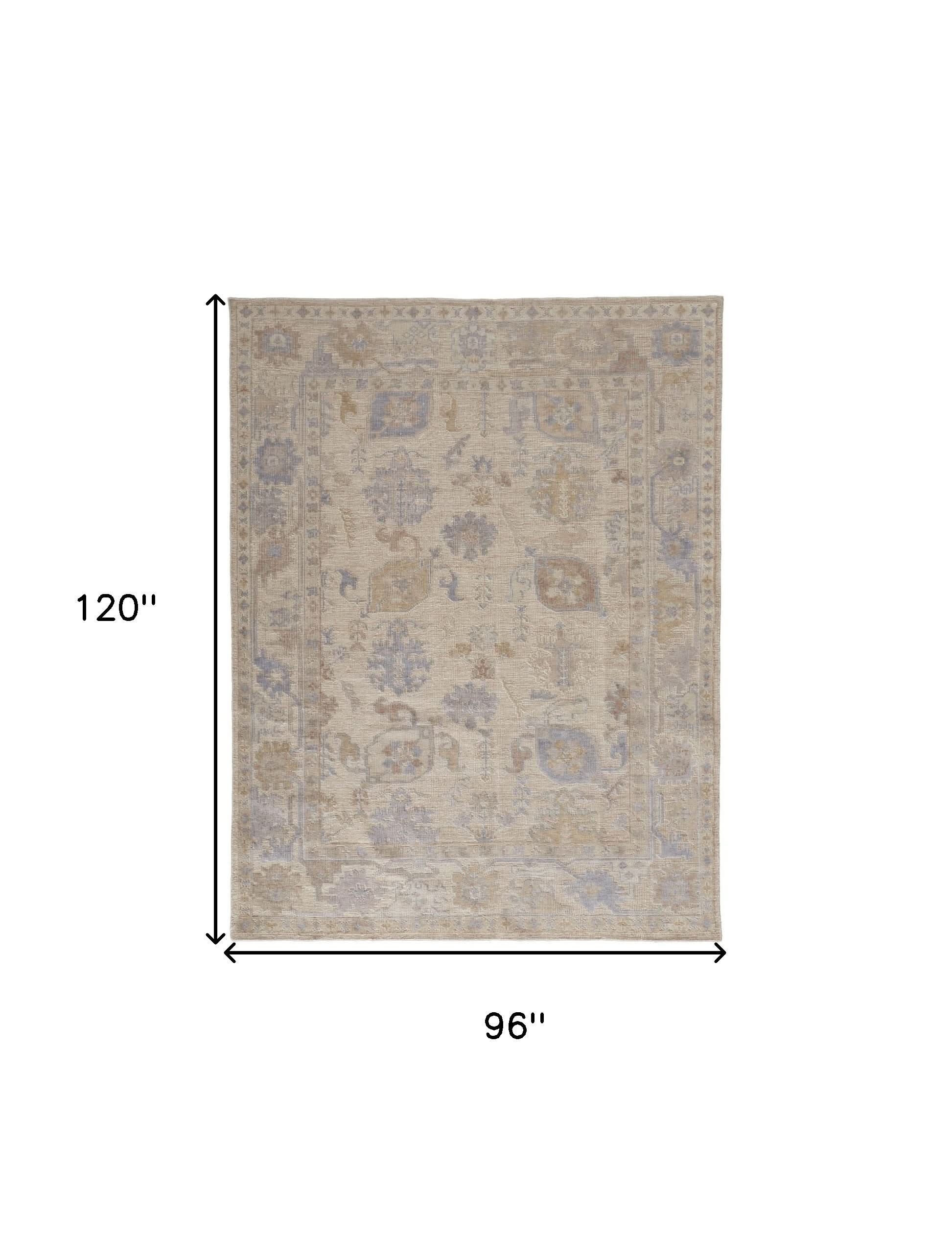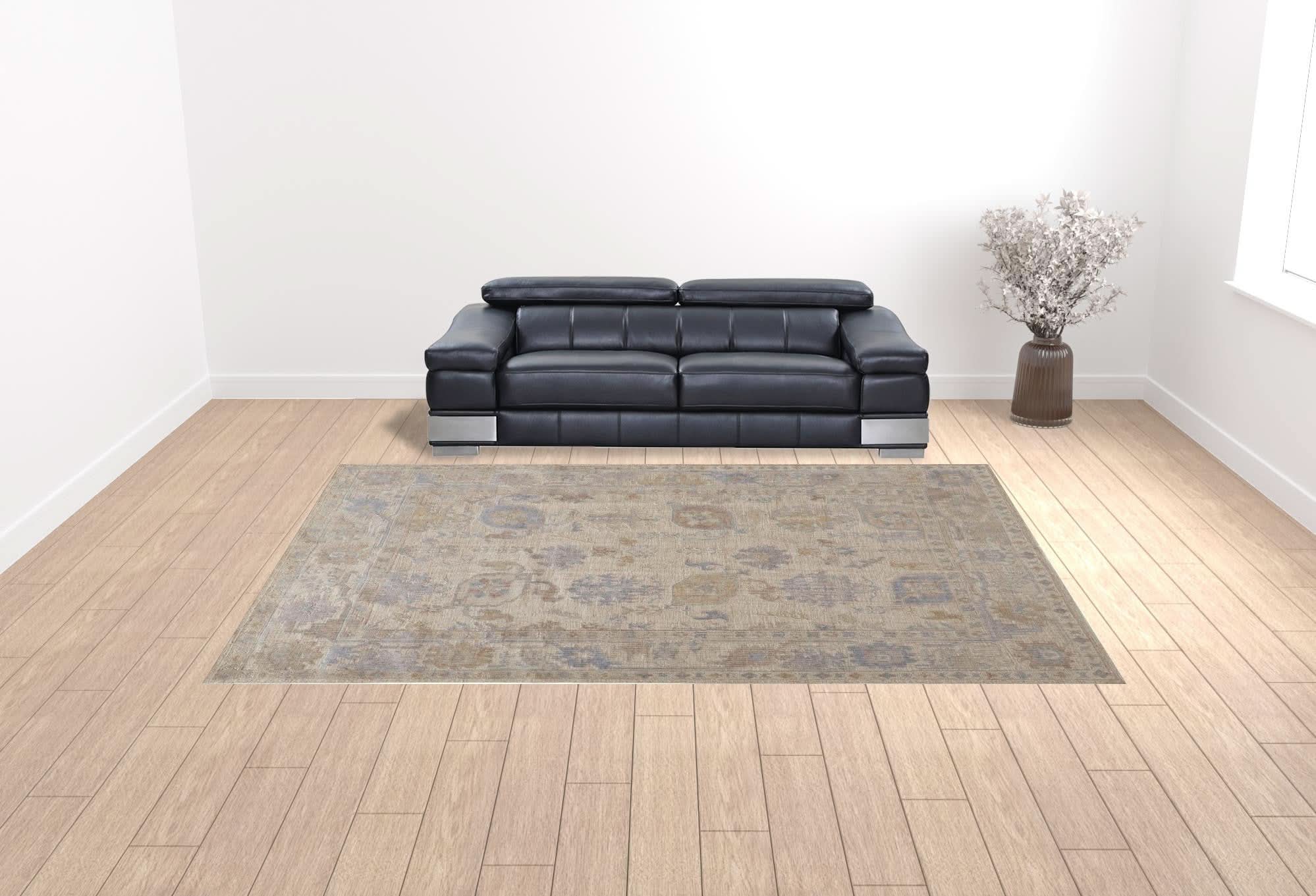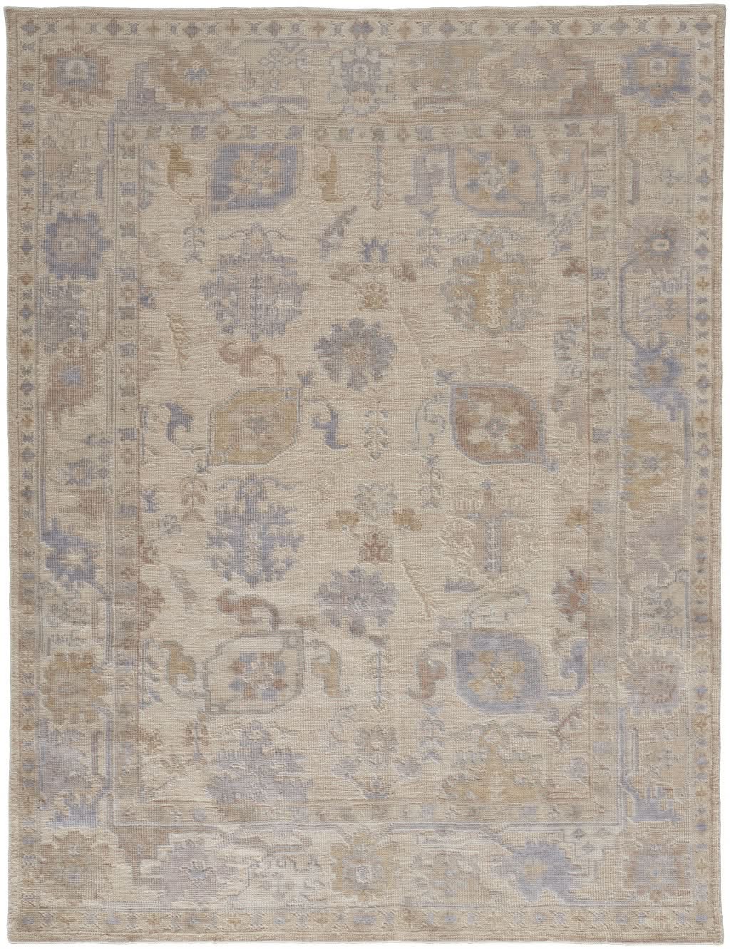 Set an inviting tone in your space with this 4' x 6' tan orange and blue floral hand knotted stain resistant area rug. This rectangle shaped rug features a floral design in tan orange and blue to give it visual interest. A classic shape marries with good looking design for your space Ideal for spaces with kids and pets, this rug is stain resistant to help repel stains and spilled liquids. Crafted by skilled artisans, this hand knotted rug is genuine and unique. No two will be exactly alike. Place this area rug against a hardwood or tile floor and it will enliven your living space with style and sophistication. 0.35" H x 42" W x 66" D
