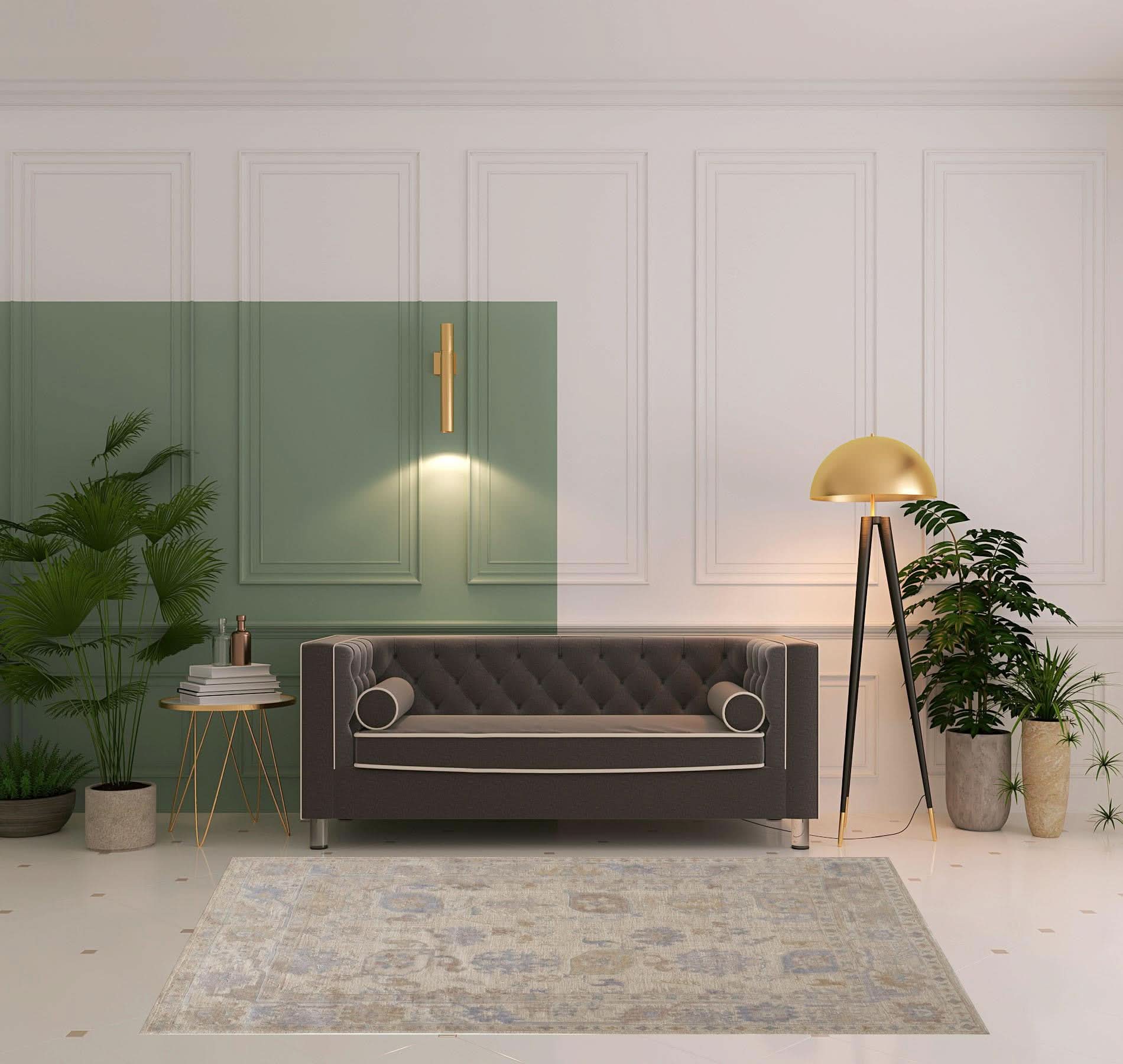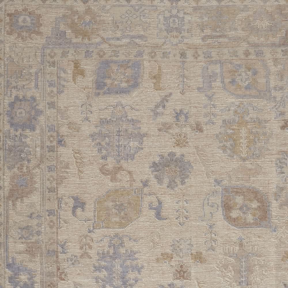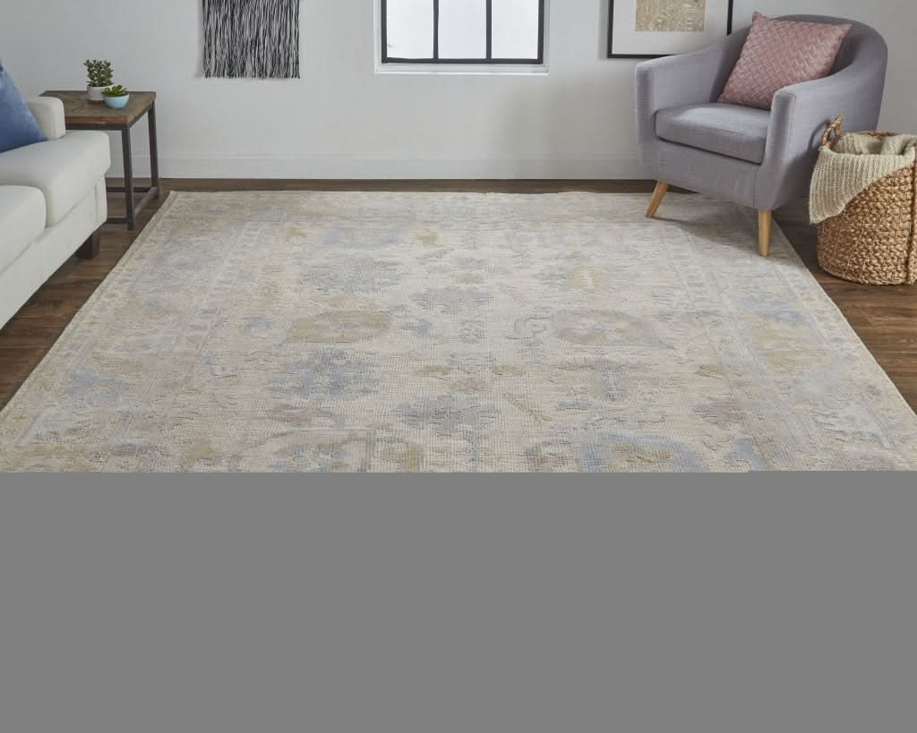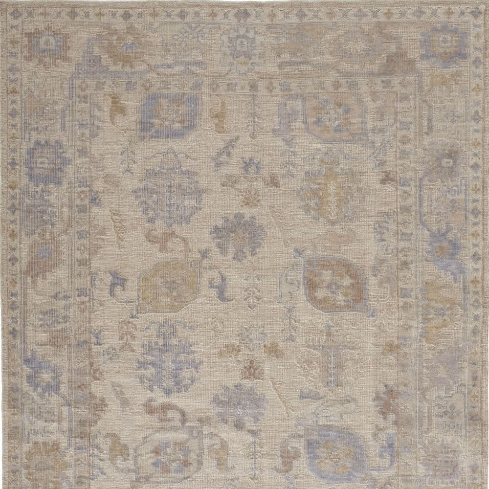 Set an inviting tone in your space with this 4' x 6' tan orange and blue floral hand knotted stain resistant area rug. This rectangle shaped rug features a floral design in tan orange and blue to give it visual interest. A classic shape marries with good looking design for your space Ideal for spaces with kids and pets, this rug is stain resistant to help repel stains and spilled liquids. Crafted by skilled artisans, this hand knotted rug is genuine and unique. No two will be exactly alike. Place this area rug against a hardwood or tile floor and it will enliven your living space with style and sophistication. 0.35" H x 42" W x 66" D
