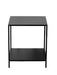 The side/end tables are 17 x 17 x 20" tall built on a steel tube frame that. The table frame and shelf options are available in the drop down menus.